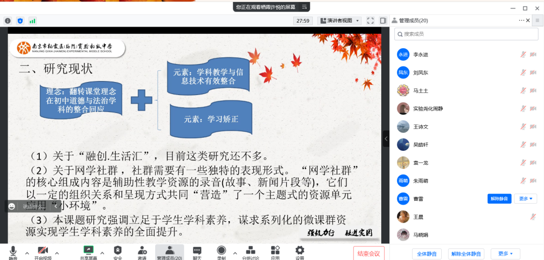 我校教科研工作立足于推进教学质量提升,面向一线教师,发展同伴互助、骨干老师引领作用,努力营造浓厚的教科研氛围。11月份进入“结题”月份,教科室力求每项课题能以高标准、质量高、品质好的原则顺利圆满结题。