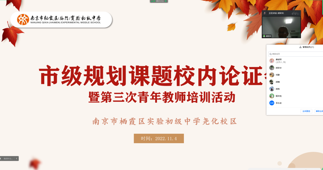 2022年11月4日,在学校教科室的组织下,市级规划课题结题校内论证会顺利召开。本场结题论证会由教科室康淑琛老师主持,出席的专家有:栖霞区发展中心胡荣华副校长、李永进副校长、王华主任、胡燕老师。本场论证会对《STEM理念在初中生物校本课程开发中的案例研究》、《初中道德与法治“融创生活汇”网学社群的建设与应用研究》两个市规划课题进行结题论证,与会人员有各课题组主持人和校内青年教师。这两项课题都是在实践的基础上进行了扎实的研究,希望该课题能够促进我校教学质量的提升和教师专业的发展。